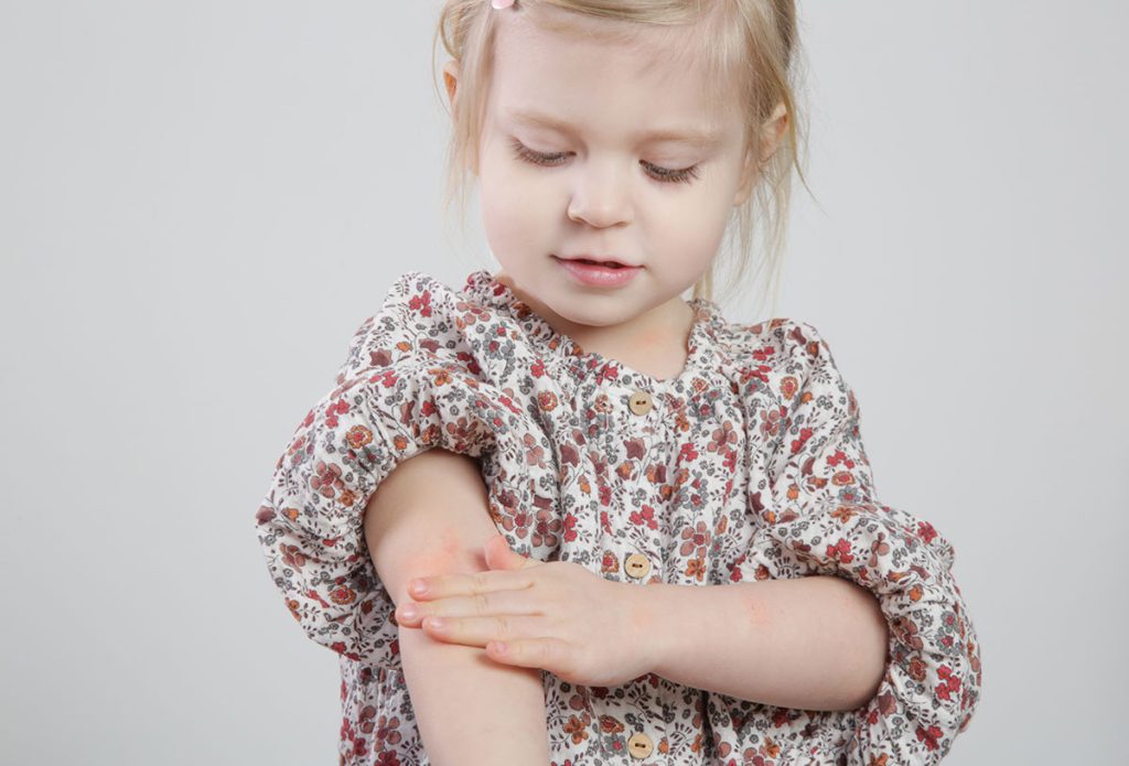 In many children, itching is made worse by citrus fruits, tomatoes, strawberries, chocolate and kiwi. It is not due to allergies, but because the skin is extra sensitive. It can be useful to pay attention to whether something in the food seems to make the skin worse.12 For children, food allergies can make eczema worse, which is uncommon for adults. Especially under the age of one, there is usually an allergy to cow’s milk and sometimes to eggs. If the child is allergic to cow’s milk, it usually passes before two to three years of age. Egg allergy usually disappears before school age. There may also be allergies to fish, soy, various cereals and peanuts. Infants with food allergies often have hives with eczema. Usually, the child also has respiratory symptoms and stomach upset.12