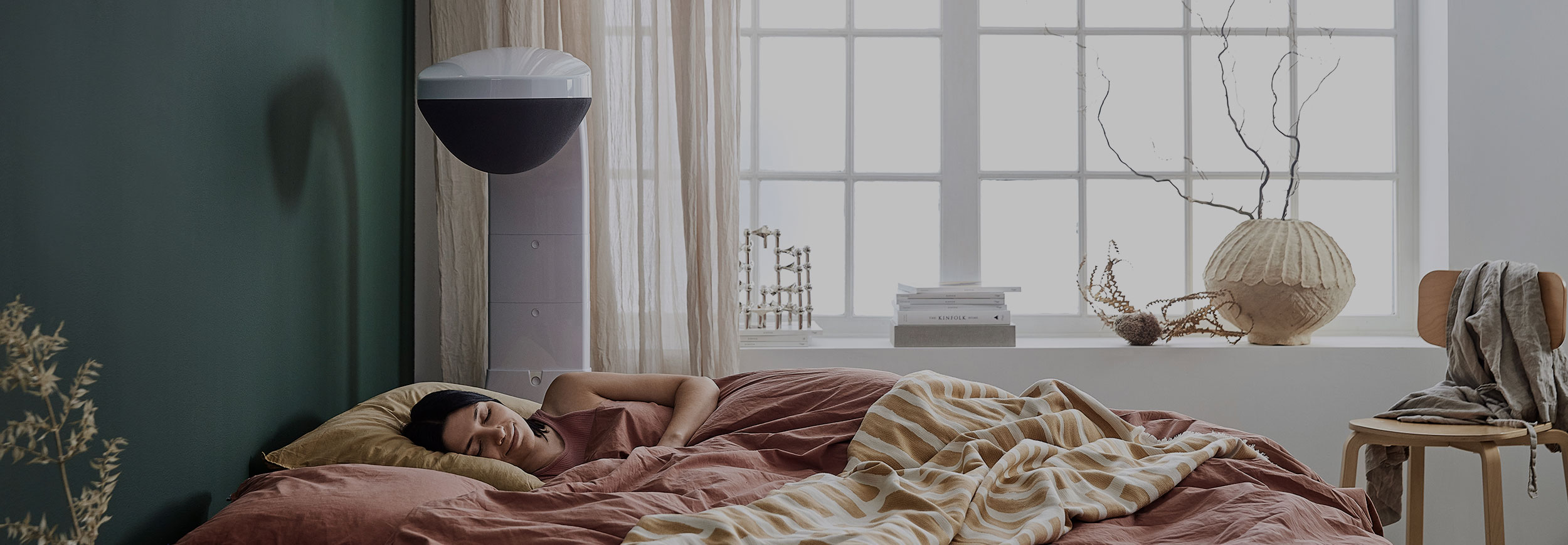 Air purifiers try to clean the whole room. The TLA technology in Airsonett Air4 focuses on purifying the air in your breathing zone while you sleep, while also lowering the total particle exposure in the room.