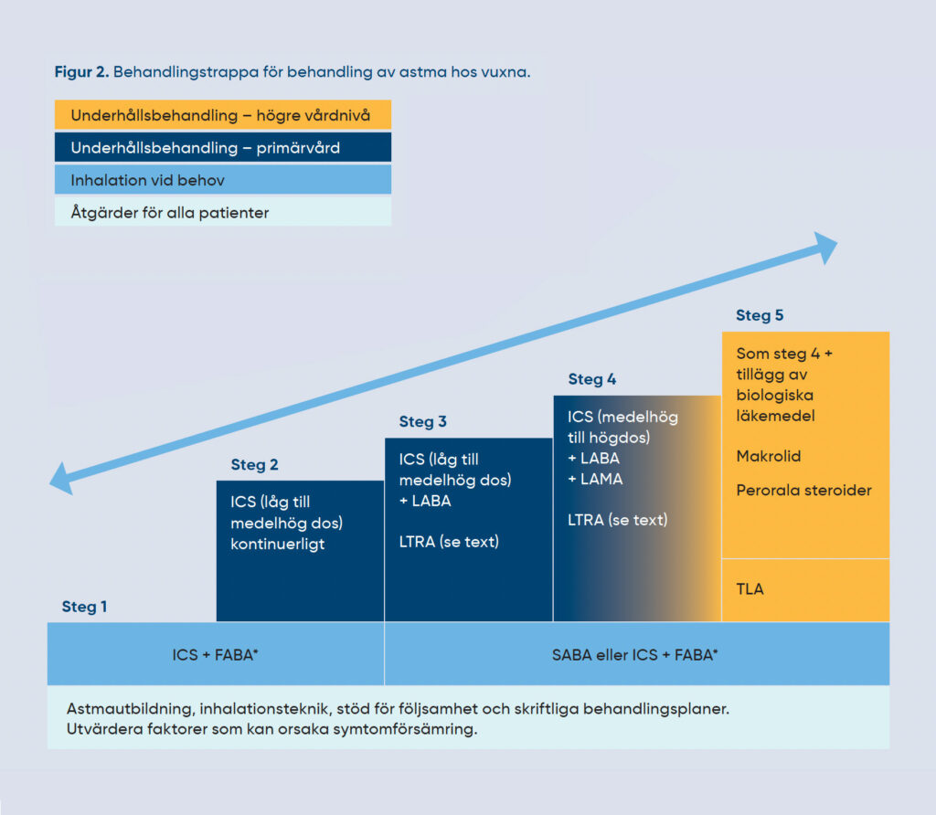Airsonett TLA (Temperature-regulated laminar airflow) is included in the Swedish Medical Product Agency’s recommendations for treating asthma both for adults and children with allergic asthma who are uncontrolled in step four on the GINA scale.